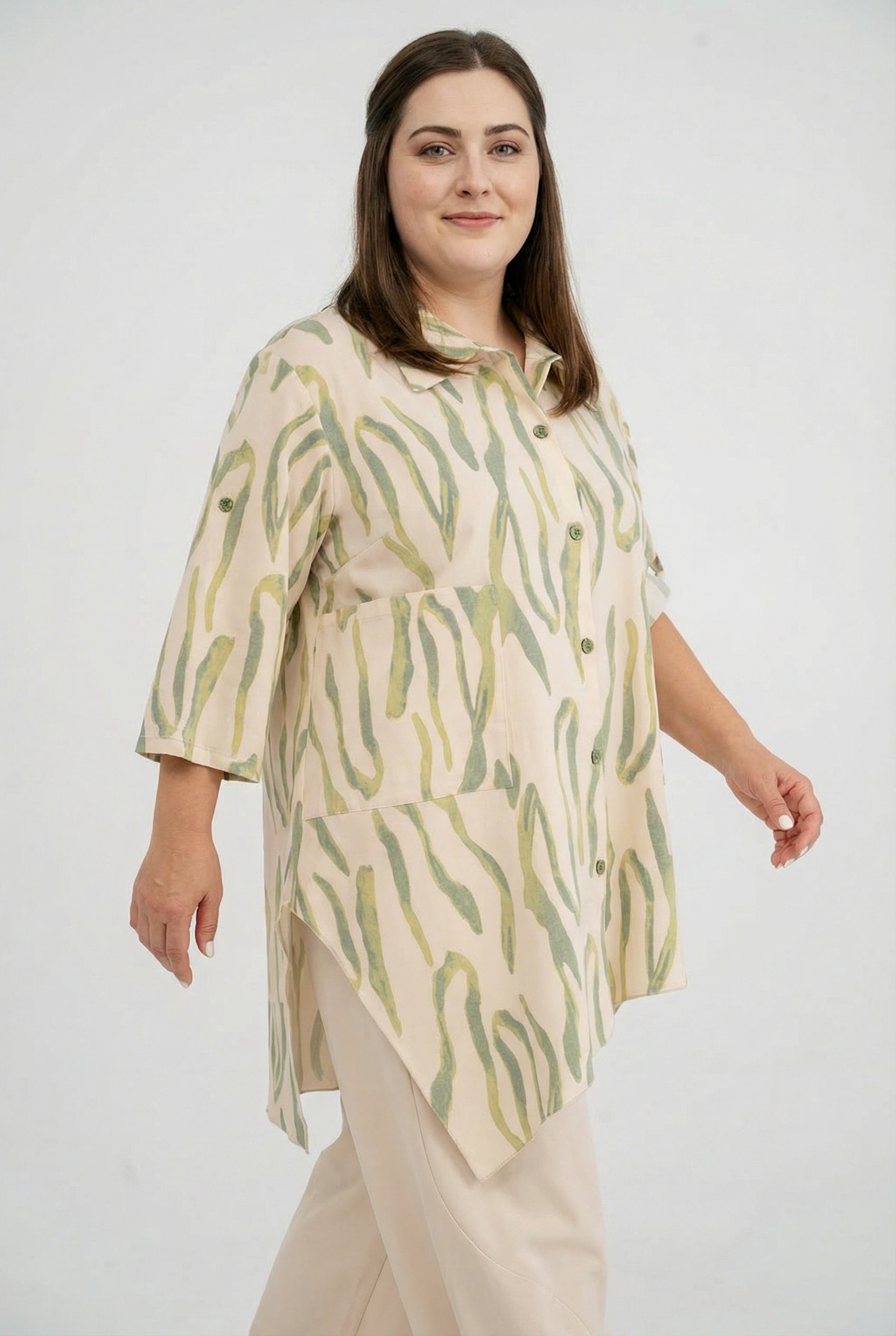 'Livia' Bluse-Tunika – let, figursmigrende & kunstnerisk mønstret