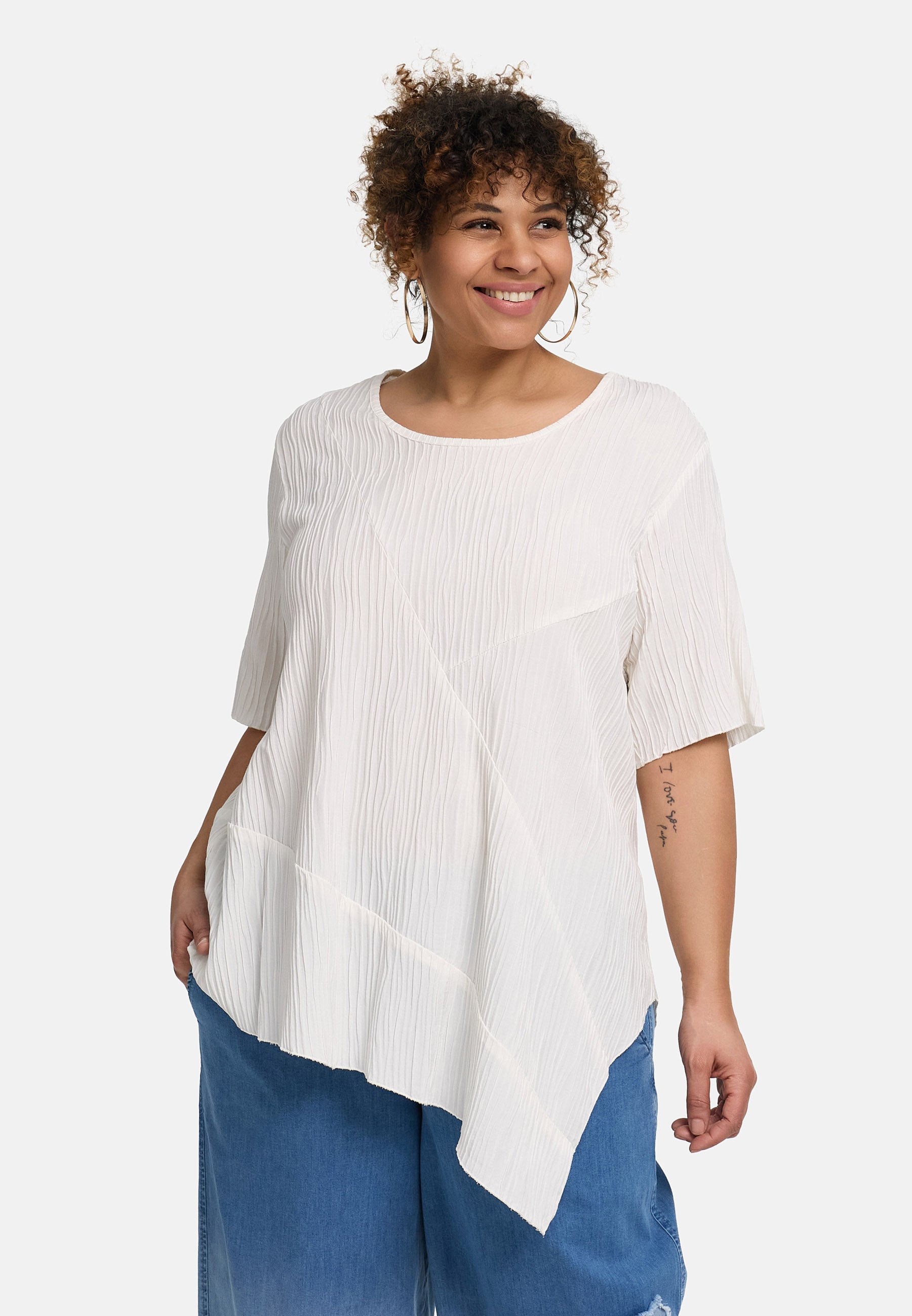 'Crissa' Tuniek – geplooid, licht & modern-asymmetrisch